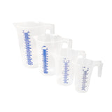 CastleGreens Measuring Cups feature easy-to-read metric liters and milliliter graduations. CastleGreens Measuring Cups are made from an impact-resistant and translucent high quality, food-safe plastic for durability and a clear view of liquid levels. Large, sturdy handle and pour spout for easy pouring. Use every day to measure liquid and solid ingredients. Microwave safe. Dishwasher safe.Available in 4 different sizes: 8 oz/250 ml, 16 oz/500 ml, 32 oz/1000 ml, and 64 oz/2000 ml.