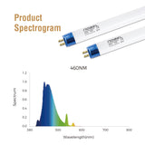 460 Nanometer fluorescent grow lamp helps bridge the gap between the vegetative and flowering stages. With the 460 nanometer spectrum, plants responses are at their fullest at all times leading to stronger root growth, compact plants, and short inter-nodal spacing.