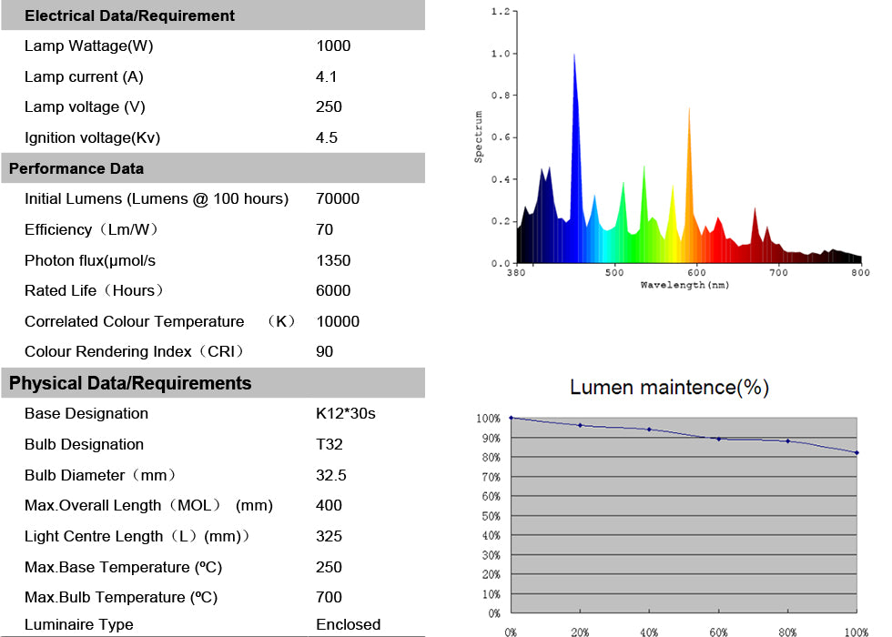 Metal Halide Lamps Double Ended MH1000W/10000K SKU#96217