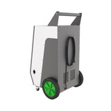 The robust steel construction with a transport handle and big wheels can withstand a fair bit and can easily be transported to any operating site.